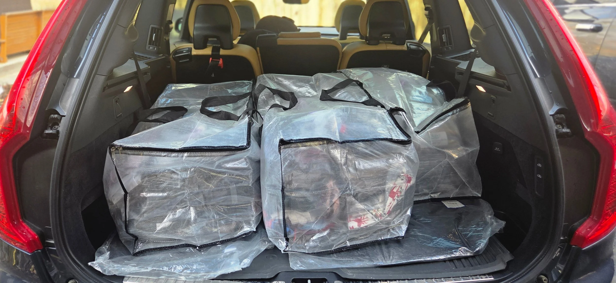 items can be in trashbags or laundry baskets